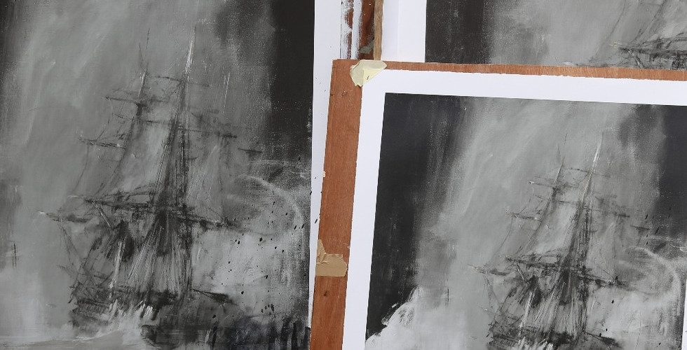 Titled 'Seascape with Crimson' and 'Seascape with Charcoal', there are four editions of the print available. Taken from the original oil painting 'Section of a seascape 6, with Alzarin Crimson', the print is currently in production with long-time collaborators Tin Dogs Fine Art in Brighton.